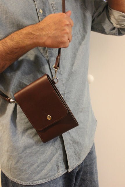 Made from full-grain, vegetable-tanned leather and hand-stitched with Vinymo MBT tear-resistant thread, Nora Veldt is crafted to move with you, from daily errands to distant travels. Its upright form is designed for compact functionality, with enough room for your smartphone, cash, coins, and essential cards. The detachable strap allows for effortless wear, whether crossbody or in-hand.