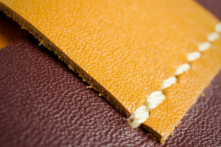 Handgenäht mit japanischem Vinymo MBT-Garn für unübertroffene Stärke und Verarbeitung. Jeder Stich ist so platziert, dass Ihre Brieftasche auch bei Belastung oder Dehnung ein Leben lang zusammenhält.